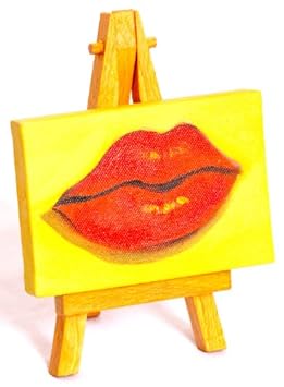 Product Title : Hand Painted Miniature Art Painting Of "The Hot Lip" On A 3.5" x 2.5" Stretched Wooden Framed Canvas + FREE Easel best seller