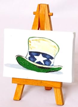 Product Title : Hand Painted Miniature Art Painting Of "The Patriotic Uncle Sam's Hat" On A 3.5" x 2.5" Stretched Wooden Framed Canvas + FREE Easel best offers