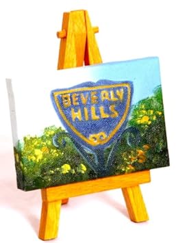 Product Title : Hand Painted Miniature Art Painting Of "The Los Angeles Beverly Hills Sign" On A 3.5" x 2.5" Stretched Wooden Framed Canvas + FREE Easel special offers