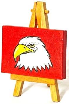 Product Title : Hand Painted Miniature Art Painting Of "Patriot Red Eagle" On A 3.5" x 2.5" Stretched Wooden Framed Canvas + FREE Easel top price