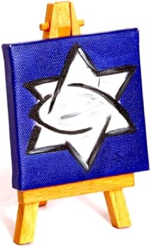 Product Title : Hand Painted Miniature Art Painting Of "Star of David & Christianity Fish Sign" On 2.9" x 2.9" Stretched Wooden Framed Canvas + FREE Easel best seller