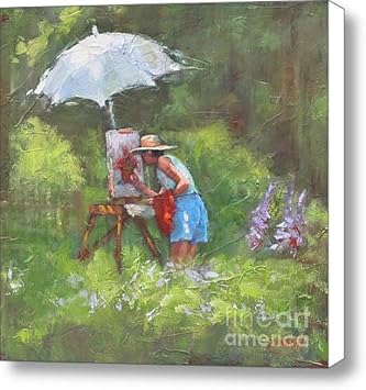 - This is a beautiful stretched-canvas print wrapped on 1.5" thick stretcher bars. The print is professionally printed, assembled, and shipped within 2 - 3 business days from our production facility in North Carolina and arrives ready-to-hang on your wall. Fine Art America is home to more than 75,000 artists from all over the world who entrust us to fulfill their print orders online. We offer a 30-day money-back guarantee on every print that we sell and look forward to helping you select your next piece. Keywords: Artist Painting Canvas Print, Artist At Easel Canvas Print, Umbrella Canvas Print, Women Canvas Print, Lady In Hat Canvas Print