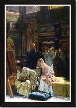 This high quality art poster is framed by our professional framers, and arrives fully assembled and ready to hang. The durable black wood frame measures approximately 20 x 30 inches. A clear plexiglass facing protects your poster and adds a lusterous shine. Posters are printed on heavy-stock, semi-matte paper producing the best possible combination of color vibrancy and durability. All posters from ClassicPix are produced and framed on demand one-at-a-time, just for you - not mass-produced. Our personal hands-on processing assures the highest quality. To see all of our prints and posters, click on ClassicPix above. About this image: A Classical art Gallery packed floor to ceiling with paintings. A central couch rests some patrons as they examine artwork.
